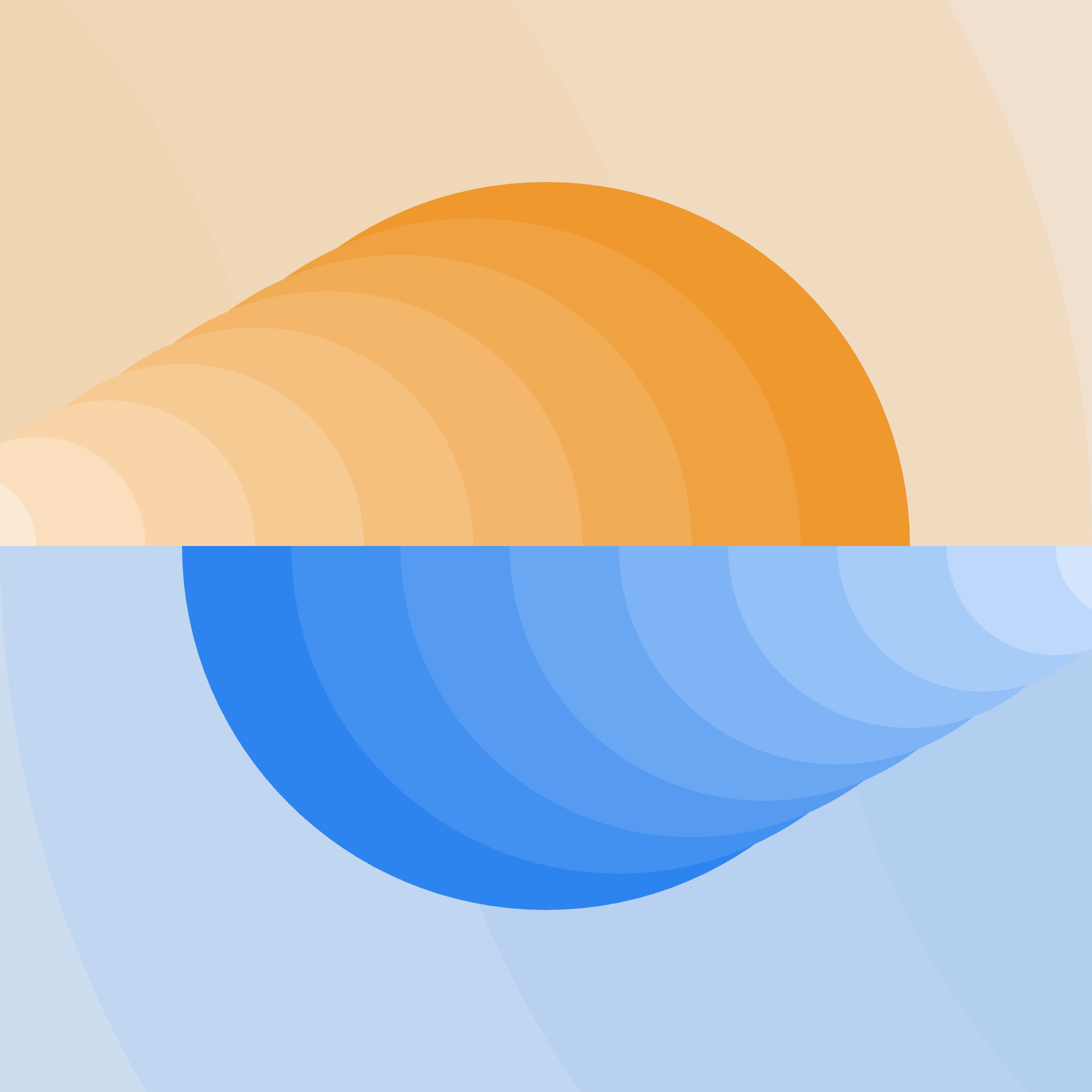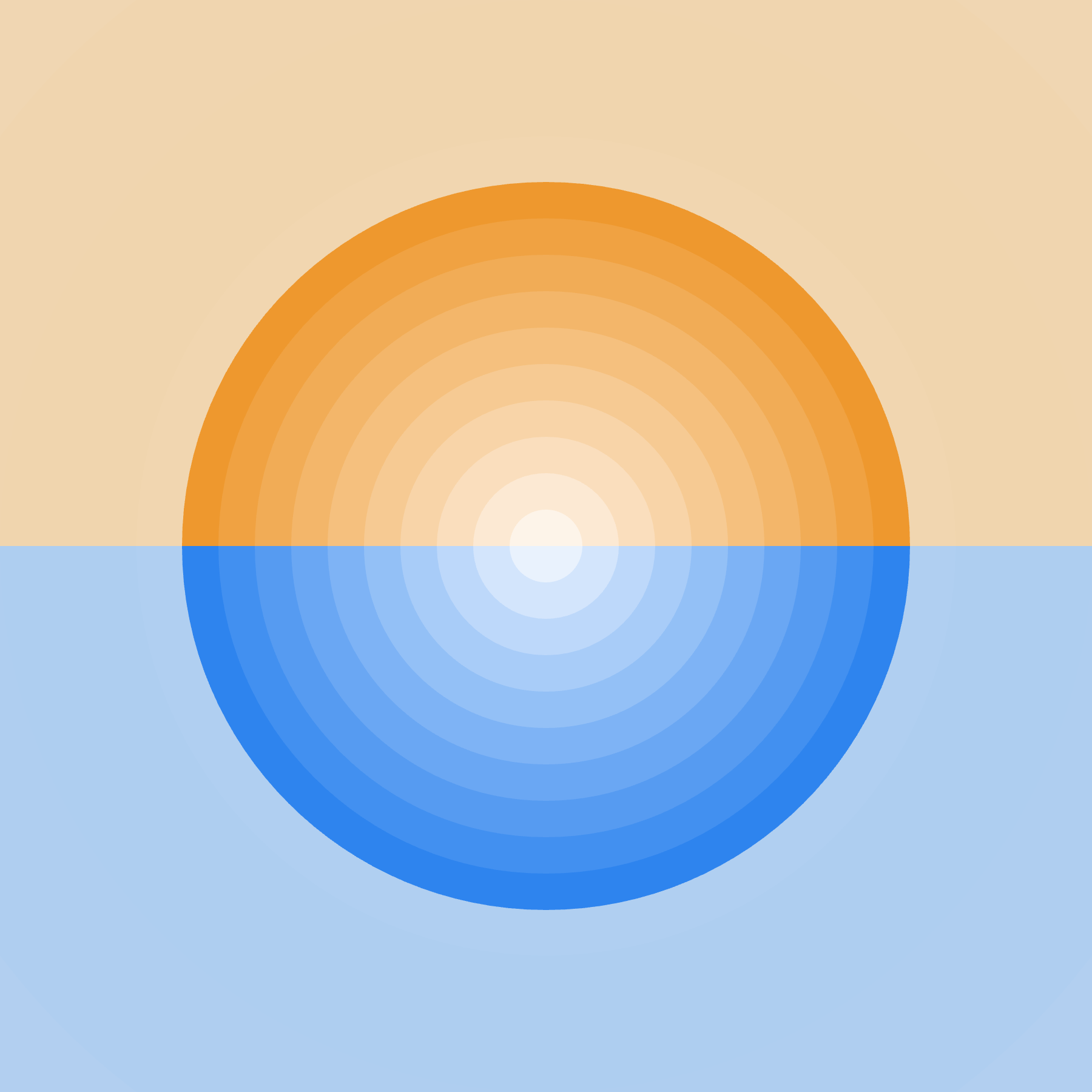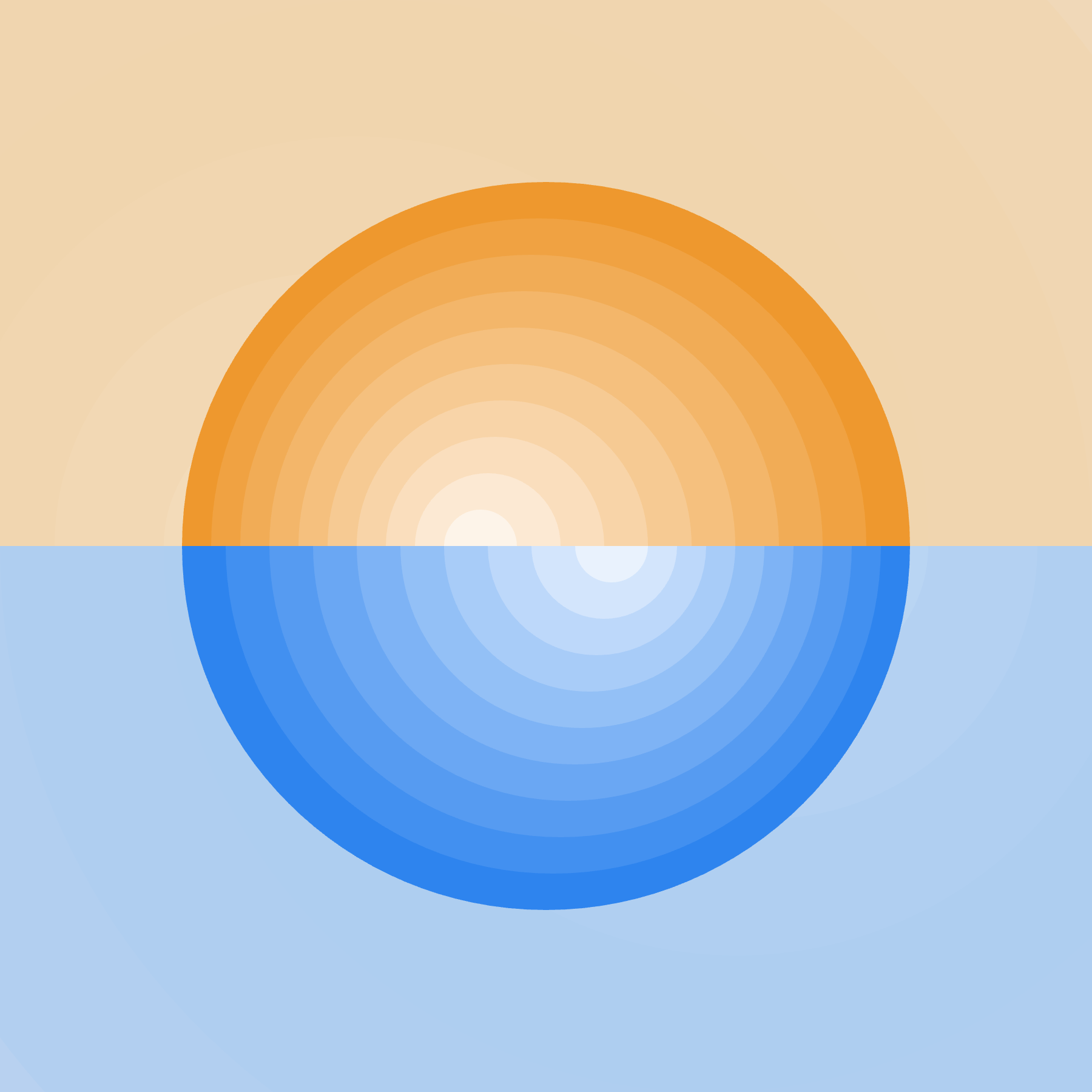 We have two groups of semicircles, ranging from largest to smallest, each with different tints. These semicircles are translated left or right and drawn progressively smaller.